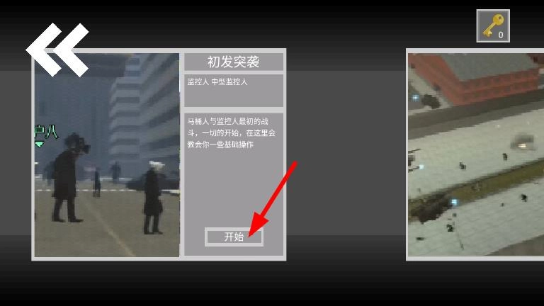 1、开启马桶人对战监控人,首先要熟悉监控人的基础操作以及技能按钮,同时了解当前战场的地形和初始出现的马桶怪,做好进入战斗状态的准备。