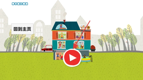 2、踏入米家小镇场景后,轻点房屋界面的播放按钮,即可正式走进游戏世界。同时,留意回到主页按钮,这样就能方便地随时返回主界面。