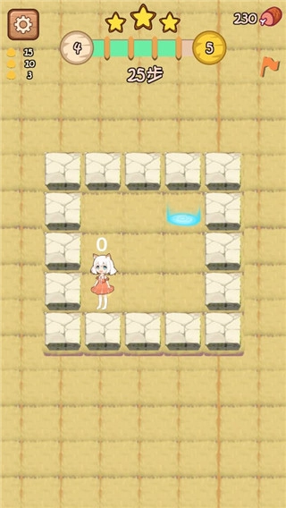 3、探索关卡类似于一款迷宫类小游戏,核心在于走过石墙内的所有空白方块。