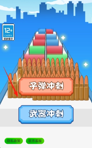 1. 来到首图,将目光聚焦在子弹冲刺按钮箭头所指方向,点击选择此模式,开启别具一格的子弹收集与射击推进玩法,投身紧张刺激的闯关之中。