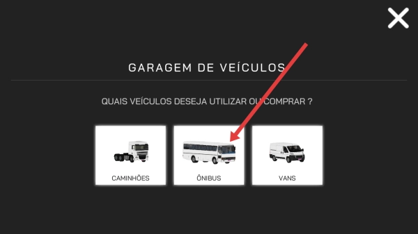 2、在车辆选择界面,依照箭头所指方向,点击“ÔNIBUS”选项,即可进入该类型车辆的购买/使用页面。