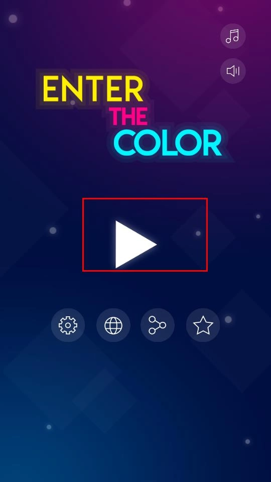 1. 轻点中间的白色播放按钮,即可启动游戏。游戏界面右上角设有音乐符号与喇叭图标,通过它们能分别对背景音乐和音效进行调控。根据个人需求完成相关操作后,便可正式踏入游戏世界。
