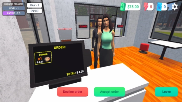 在这款令人着迷的餐厅模拟器里,你将烹制美味菜品,筹备各类菜肴,使顾客心满意足地离开。熟练掌握快餐制作的门道,把控超市模拟器的物料供给,保证每个汉堡与薯条都新鲜无缺。从在货架上陈列优质食材,到在收银台与收银员交流互动,你的能力会在餐厅的各个环节经受检验。