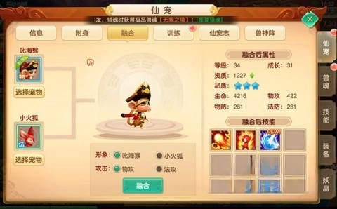 除此之外,玩家能够借助融合低级仙宠和高级仙宠的方式,提升自身战斗力,进而使你的战斗队伍愈发强大。