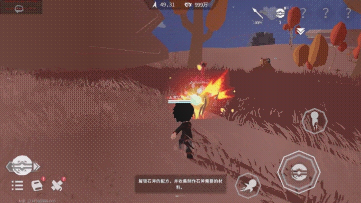 当您靠近采集素材时,右侧会出现材料名按钮,点击该按钮就能进行采集~