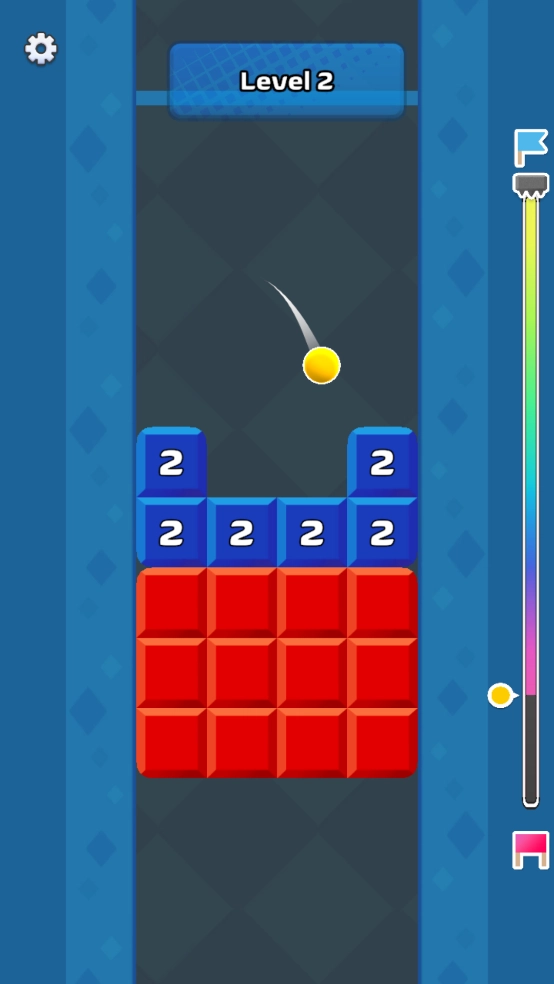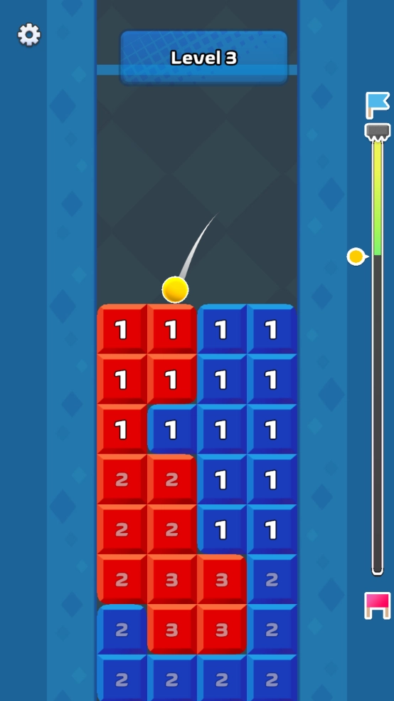 2. 小球会自行下落,与之颜色相同的方块上的数字也会随之减少。