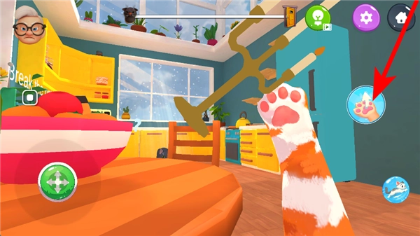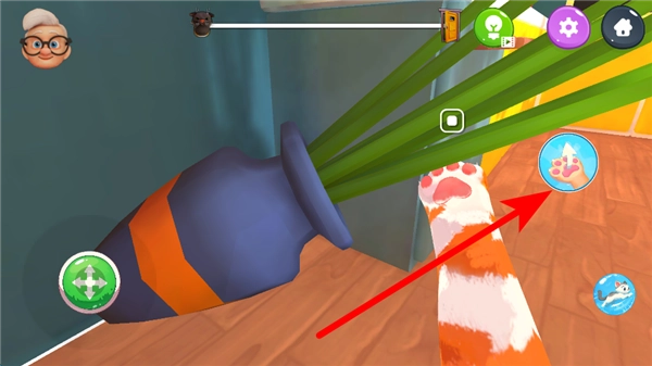 2、当猫咪靠近花瓶这类物品时,点击对应的操作按钮,猫咪便会做出搞怪动作,把花瓶推倒,让你体验搞怪的乐趣。