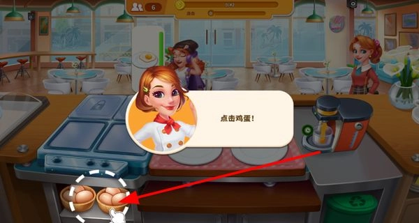 2. 玩家通过操作点击如鸡蛋篮之类的食材区域,获取新鲜食材,为烹制美味佳肴做足充分准备。