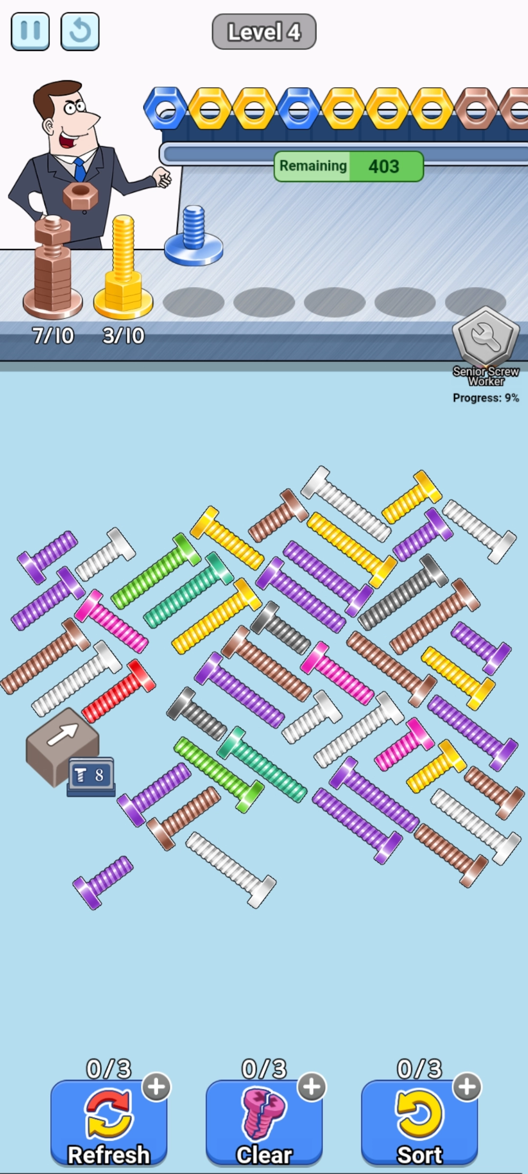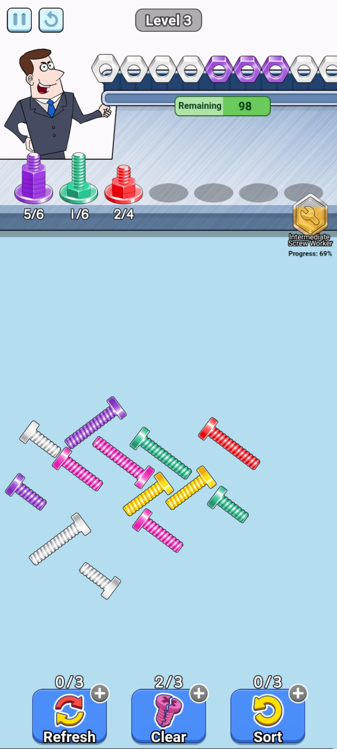 3、游戏的颜色设置清晰且明亮,使得玩家能够更轻松地区分不同颜色的螺栓与螺母。
