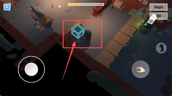 2. 轻点进入游戏页面,滑动左侧操控键,操纵角色向前行进,获取前方的控制杆。