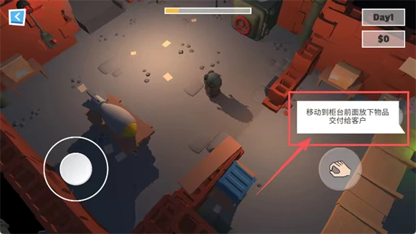 3、进入游戏后,留意左上方的摇杆,持续移动戴着打折头盔的角色,把指定物品交给柜台前的客户。