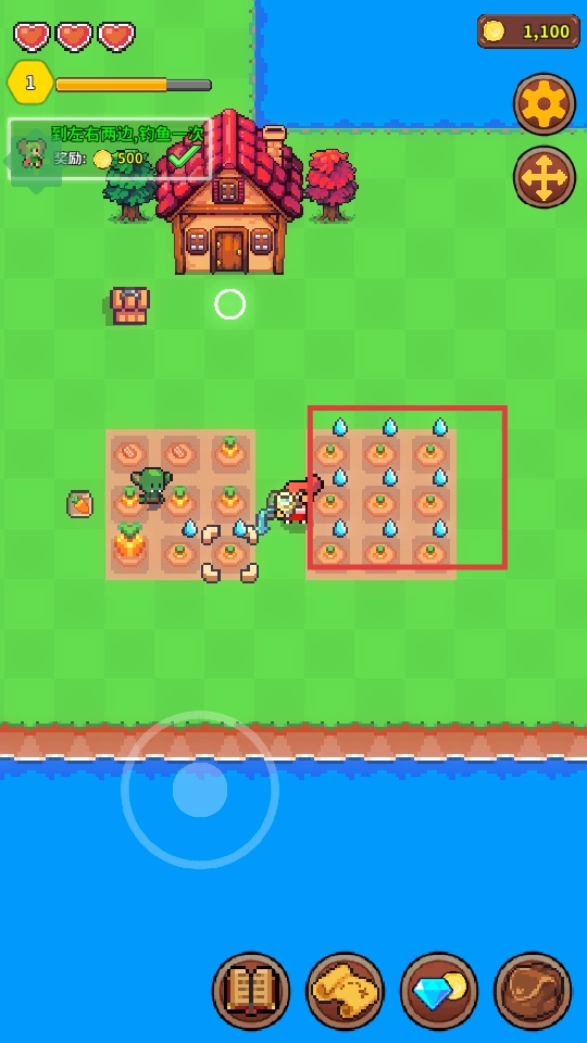3、对农作物进行浇水,以推动其生长。在此过程中,要留心农场内各类资源的收集工作,从而提高农作物的产量。