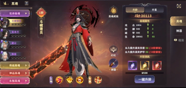 激活真魂功能,投身古道剑阁活动,获取真魂外观与培养素材,大幅提升战力。