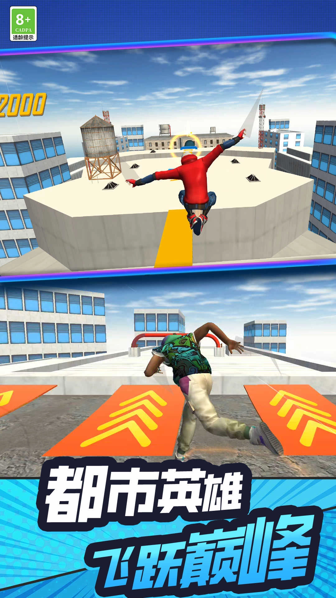 4、穿梭于高低错落、间距各异的屋顶平台之间,跳跃前行,同时收集一路上的金币。当触碰到特色道具时,能获取临时加速或者护盾的效果。