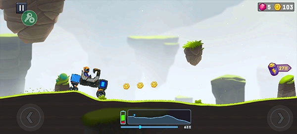 在这款游戏里,玩家拥有丰富多样的零件可供挑选,用以组装自己心仪的赛车。随后,驾驶着精心组装的赛车在横版关卡中奋勇前行。过程中,只需轻点屏幕操控赛车跳跃,就能轻松躲避各种障碍。同时,别忘了收集轮胎、发动机等道具,它们能有效提升赛车性能,助力玩家获取更多资源,进而对车辆进行持续改装升级。