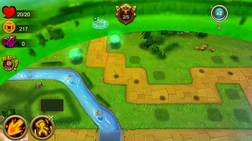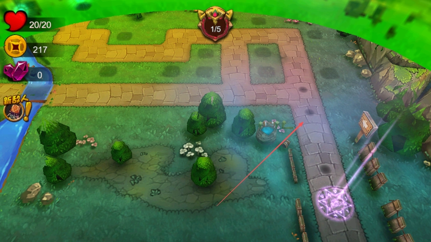 2、安置好防御塔后,关注敌人的行进路线,参照箭头所指方向,保证防御塔可以攻击到敌人。