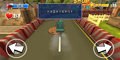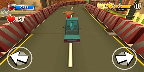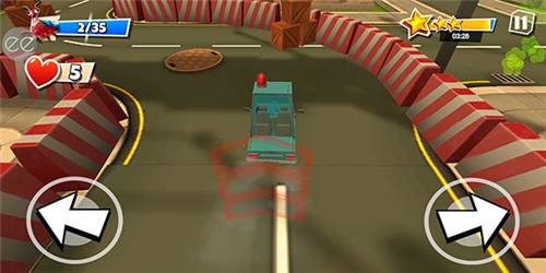 6、汽车会自动加速前进,玩家仅需点击左右两侧的箭头就能控制车辆的方向。