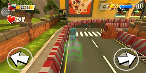 7、驾驶过程中,你会看到赛道上堆积着盒子,要尽量绕开它们,不然就会损失生命值,也就是左侧爱心的数量。
