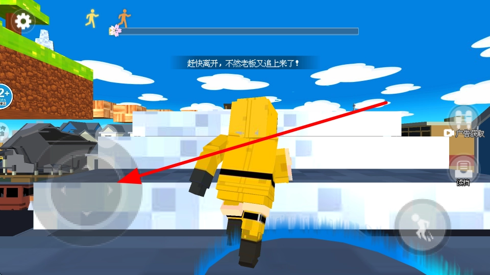2、轻点跳跃按钮,角色便能迅速跃起,不仅能够轻松越过障碍,还能躲开从后方追赶而来的老板。