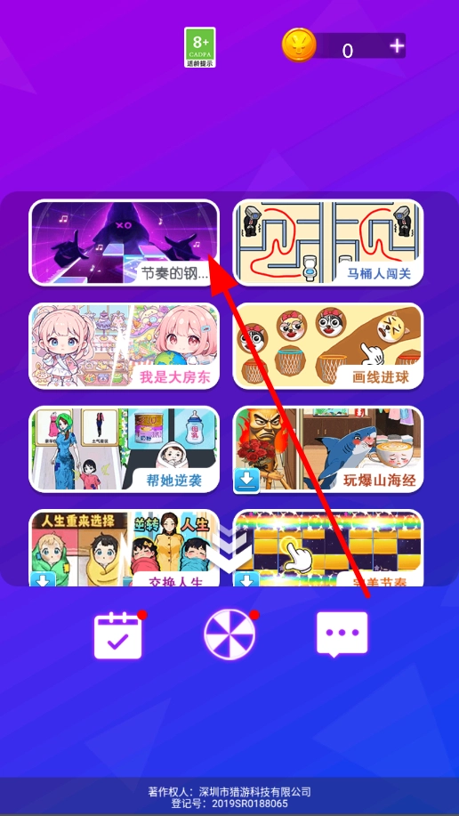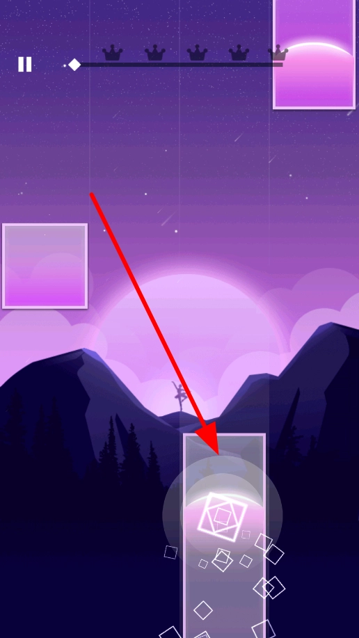 3、在游玩时,注意下落的方块。当方块抵达指定地点,点击屏幕,使方块成功被接住,依照音乐节奏不断重复这一操作。