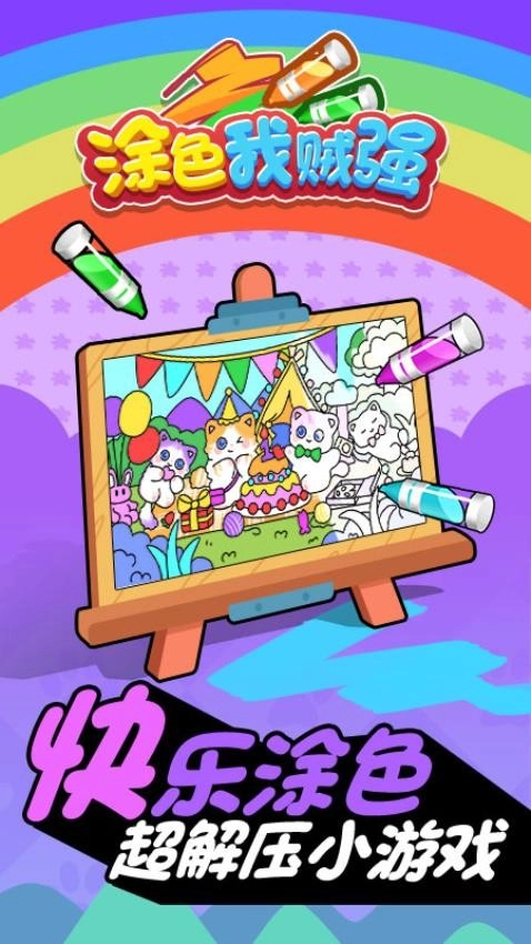 《涂色我贼强》这款消除小游戏创意十足,玩家需费尽心思收集水彩笔墨水,消除那些灌满颜料的方块,在超解压的游戏过程中,实现自己的涂色画画。