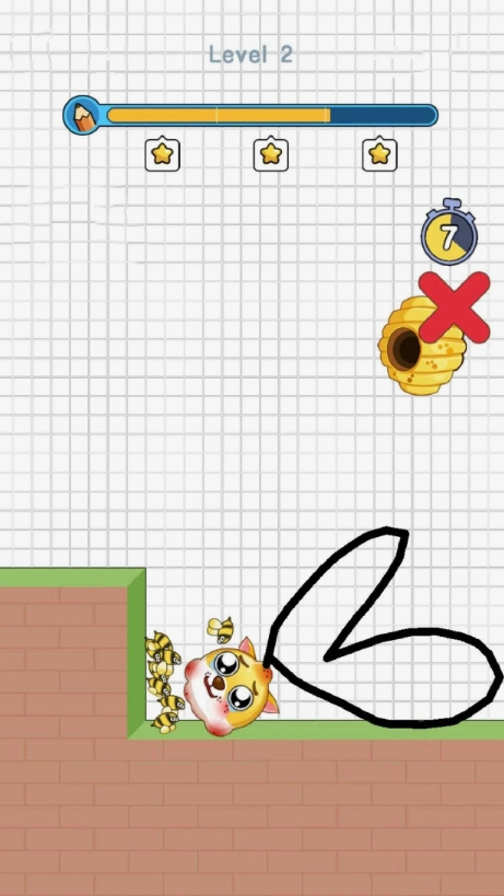 1这是一款把画线作为核心玩法的益智闯关类游戏,玩家要凭借绘制线条来抵御蜜蜂的进攻,让可爱呆萌的狗头不受到伤害。