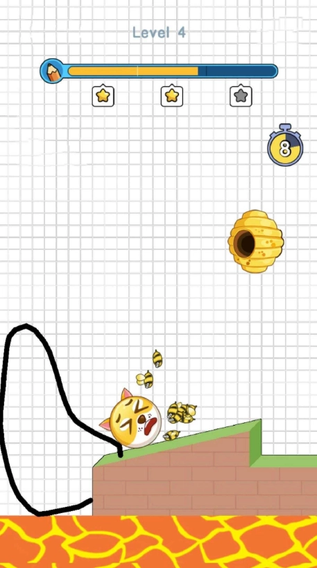 1. 玩家需在屏幕上通过手指滑动来绘制线条,这些线条会形成障碍物,进而改变蜜蜂的飞行路线,让蜜蜂无法径直攻击狗头。