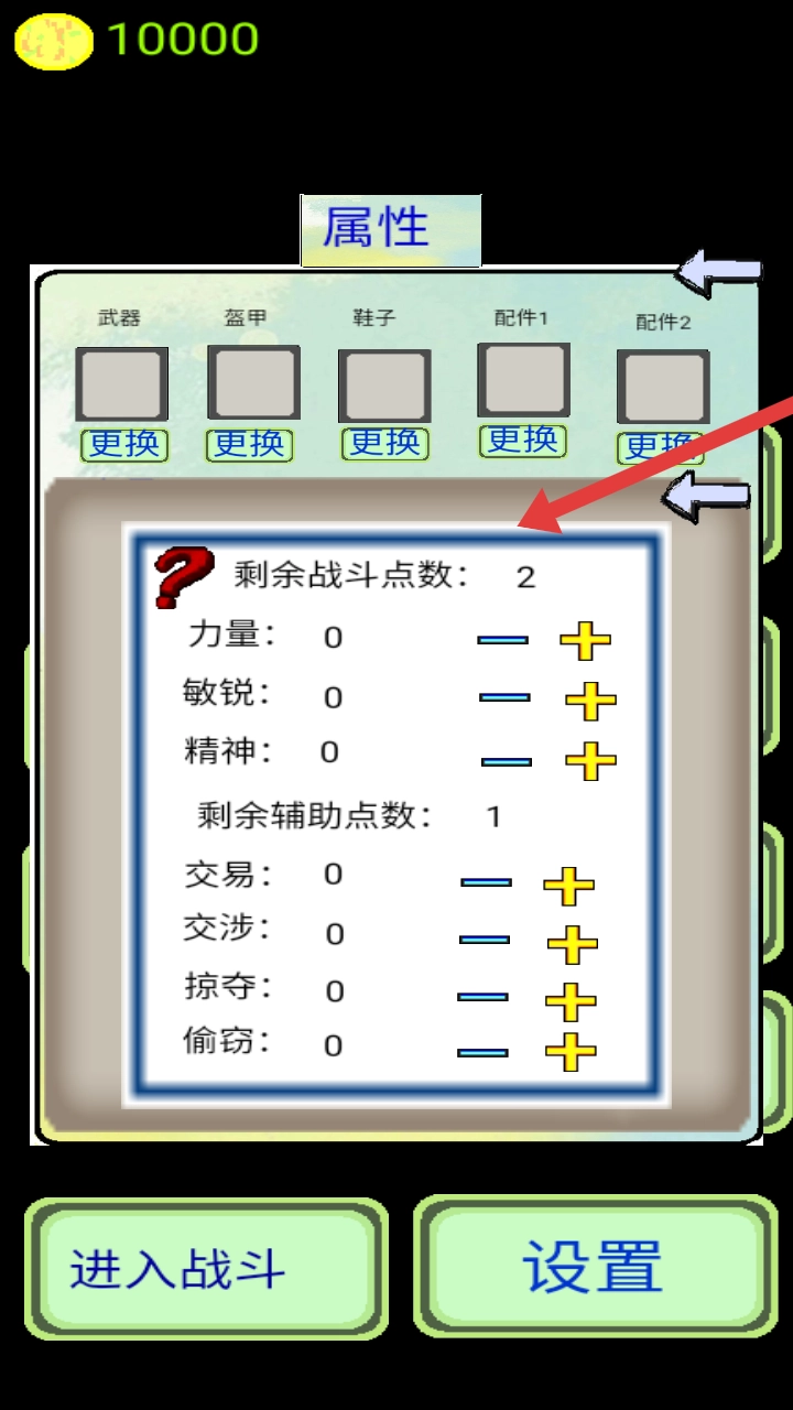 1. 于角色属性界面轻点点数按钮,即可进入点数分配页面,在此对战斗与辅助点数进行规划,以此强化角色能力。