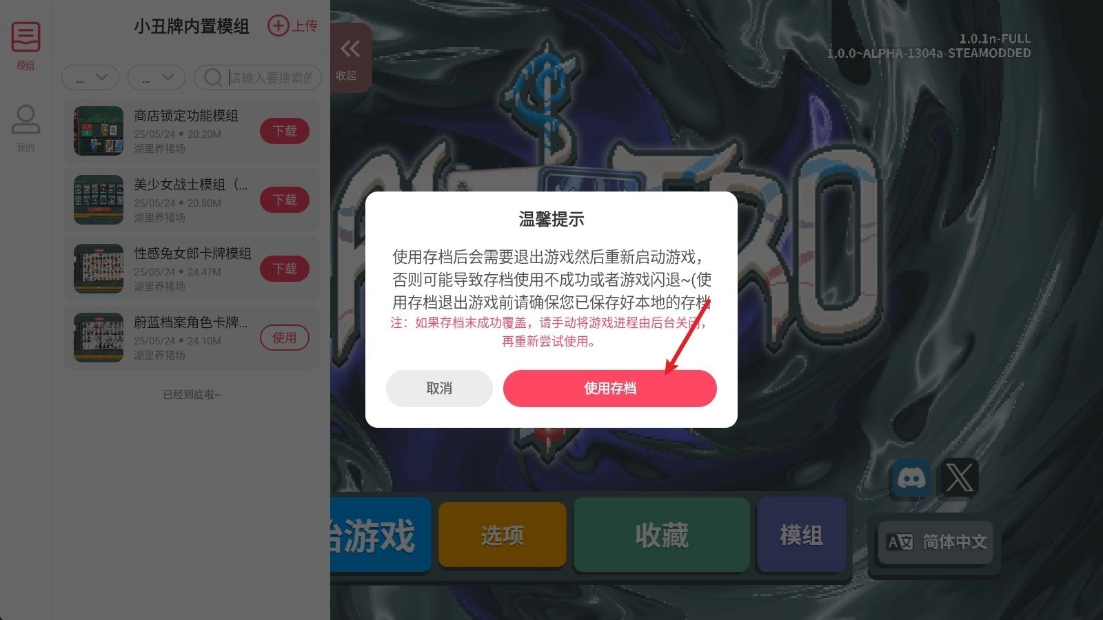 好之后就会提示你使用,点击后就会重启游戏。