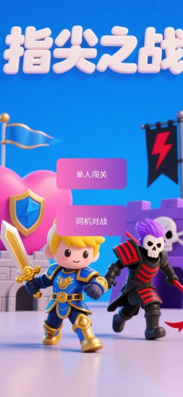 指尖之战是一款极具创新性的即时对战游戏,它将屏幕一分为二,营造出紧张刺激的双阵营对抗氛围!游戏采用独特的“手速决定兵力”机制,玩家需快速点击己方堡垒来生成士兵,士兵数量直接影响对敌方的伤害输出。在规定时间内,较量谁造成的伤害更高,获胜者即可成为王者!游戏不仅支持单机AI挑战以提升技巧,还提供同屏双人对战模式,让你随时随地与好友展开一场手速与策略的终极较量。简单易上手的操作结合深度竞技玩法,绝对让你玩得停不下来!