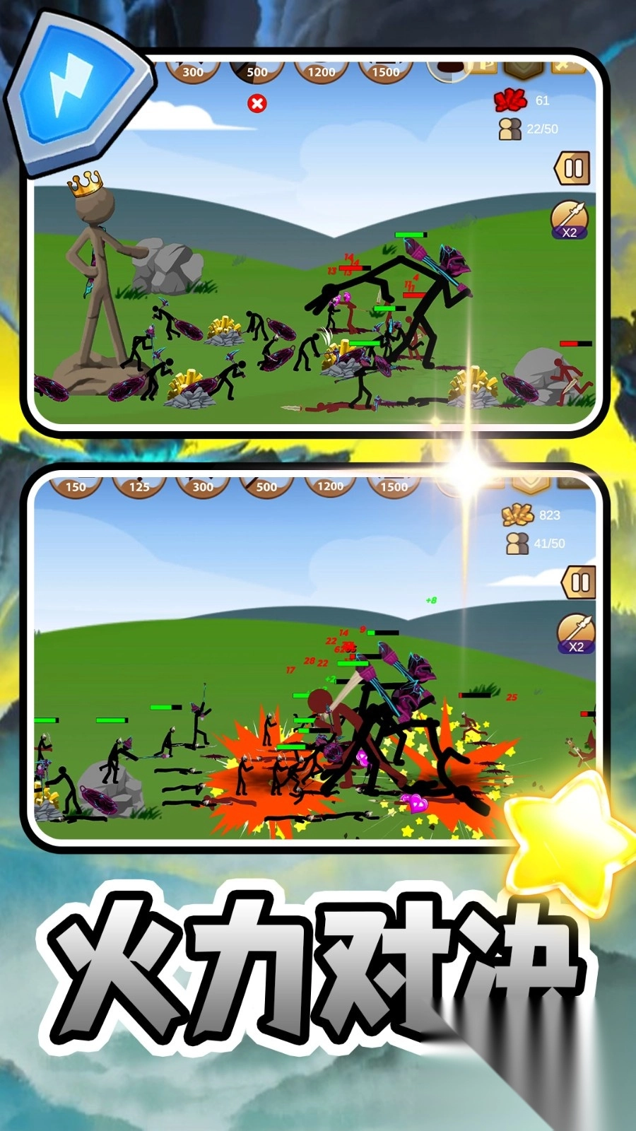 《荣耀对决》是一款策略维度无限延展的对战游戏,你需要组建专属火柴人战队,指挥他们踏上征战之路——在多样场景中迎击不同敌人,从横行的僵尸军团到各类风格迥异的对手,都将成为你的挑战目标。通过收集关键资源、持续升级强化,一步步打造出战斗力爆表的强力战队;在过程中体验运筹帷幄的乐趣,凭借灵活的操作与精妙的策略布局攻克难关、击败敌人,最终尽情感受掌控全局的酣畅快感。