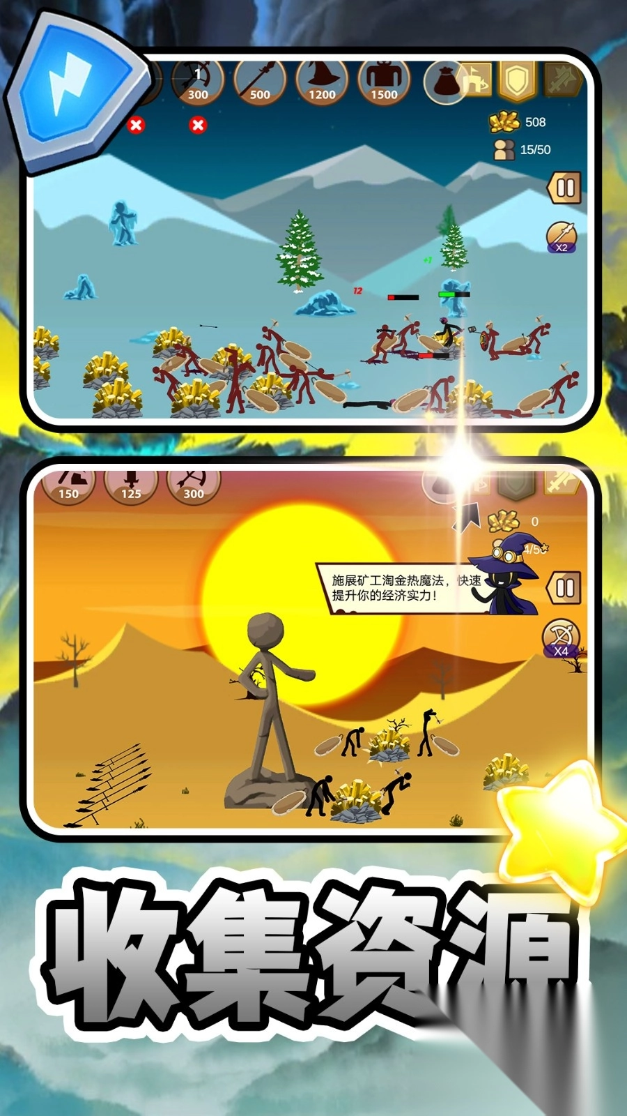 用资源招募火柴人兵种,搭配组建专属战队。