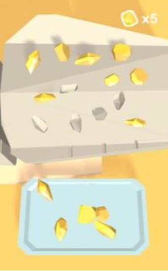 没有太多的操作难度,只要使用给出的工具将巨大石头给打碎就能够获得一些金矿石哦,