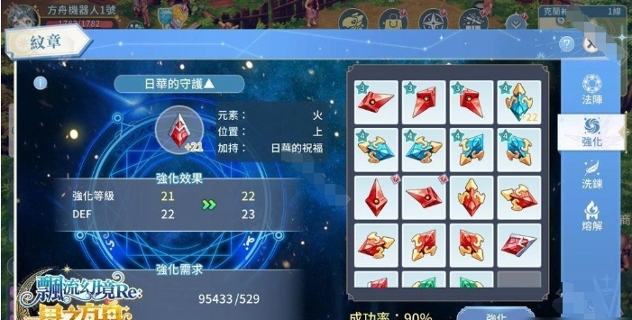 消耗对应属性的「魔能」能够强化纹章,从而获得更多的能力加成。