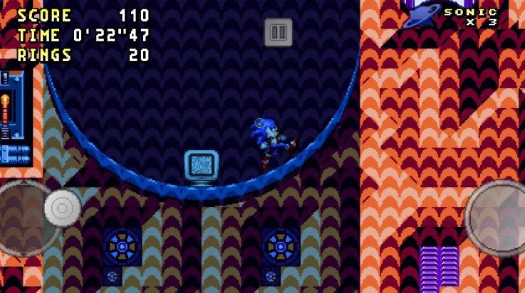右侧的按钮可操控索尼克跳跃,长按该按钮能让他跳得更高一些。