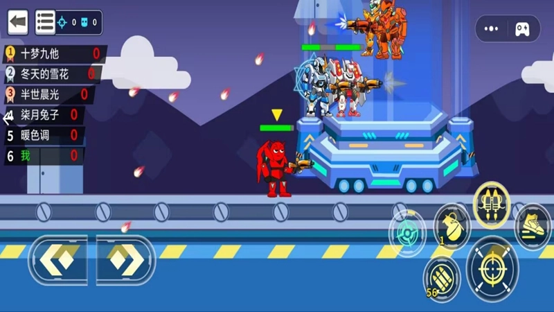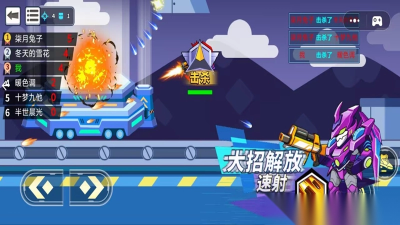 玩家借助虚拟摇杆来操控机甲英雄的移动走向,点击屏幕上的攻击按键,机甲英雄就会施展出对应的攻击招式。