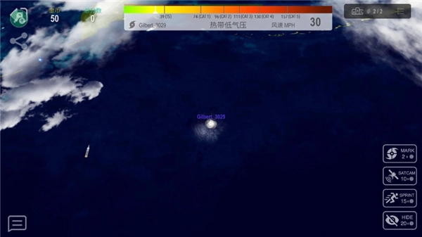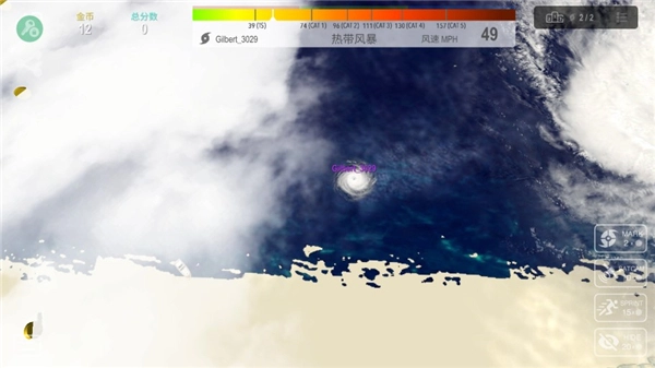 《飓风大作战》的玩法和贪吃蛇类似,玩家需要通过收集能量来达成最终目标。操作方式是滑动屏幕控制移动,右下角设有加速按钮。需要注意的是,能量来源于空气或海面的水与热能,而猎杀比自身规模小的飓风能让你更快成长!