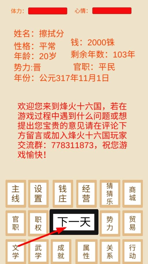 开局的决策策略在于依据初始属性来规划发展路径:若武力值较高,可选择从士兵做起,逐步积累军功;若智力较为突出,则能投身谋士集团,凭借出谋划策的能力,为后续的发展筑牢根基。