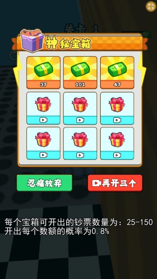 每个宝箱能开出的钞票数额在20到150之间,且每个可能的数额被开出的概率均为0.8%。