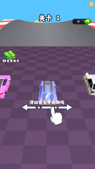 拖动指示标即可进入游戏环节,操控车辆在场景中左右穿梭时,要留意别让它滑出地图边界。