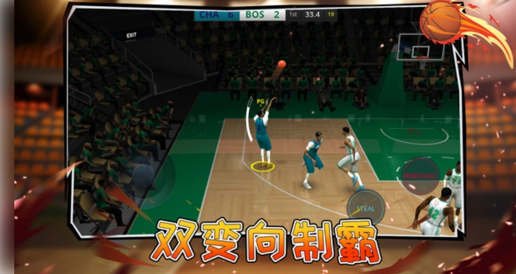 在赛场上,操控自己的球员,通过精准的投射、巧妙的传导、严密的盯防以及积极的篮板争夺等一系列操作,全力压制对方,直至取得胜利。