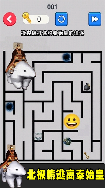 踏入挑战场景后,通过手指在屏幕上的滑动操作,引导白色的极地哺乳动物在复杂的路径网络中移动,同时避开那位来自古代王朝的威严统治者。