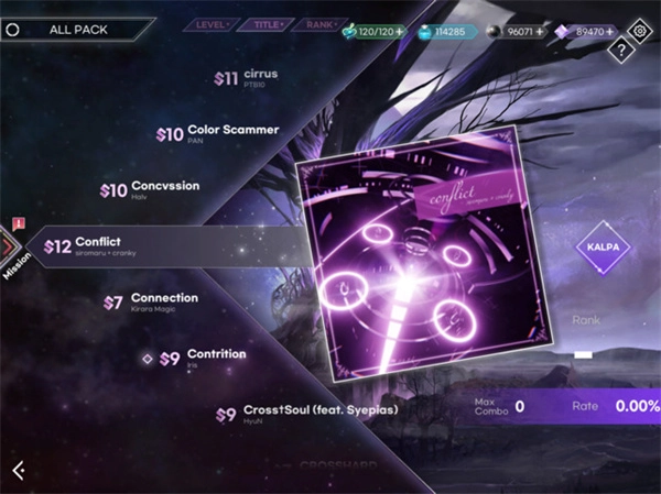 KALPA是一款以硬核节奏和艺术美学为核心的音乐游戏,由韩国团队研发,其独特的视觉风格与高品质曲库深受音游玩家喜爱。游戏采用下落式音符的玩法,玩家需要依据音乐的节拍,点击或滑动屏幕上的判定区域,精准击中随着旋律出现的音符。曲库包含电子、摇滚、古典融合等多种曲风,不仅有知名作曲家的原创作品,还有经典曲目的改编版本。玩家通过完成不同难度的谱面挑战,能够解锁新的曲目、皮肤以及剧情章节,从而沉浸在节奏与艺术相互交织的音乐世界里。