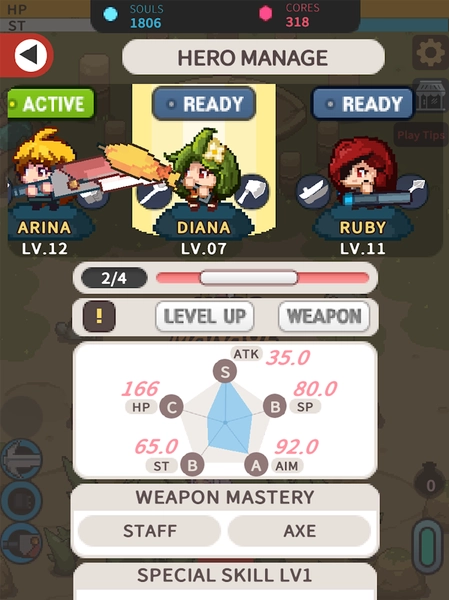 这是一款轻松的养成类游戏,只需动动手指,就能培养出一位强大无比的勇者,让他替你完成各种任务。