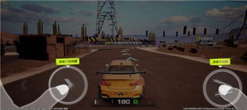 2、进入游戏后如图,游戏采用横版操作,左边两个按钮控制赛车左右。