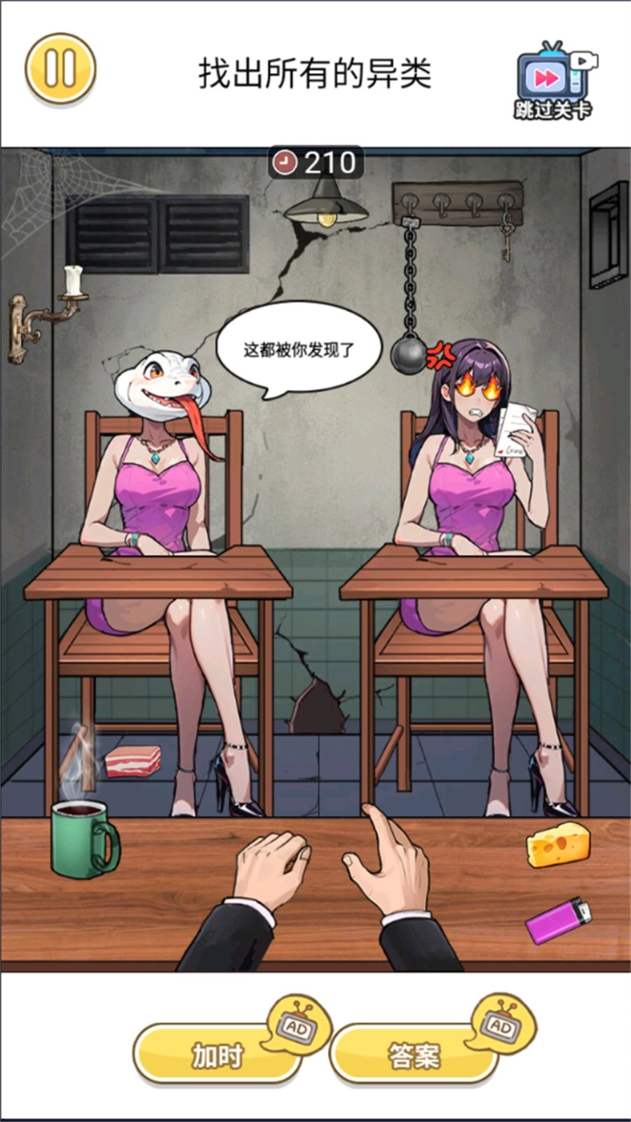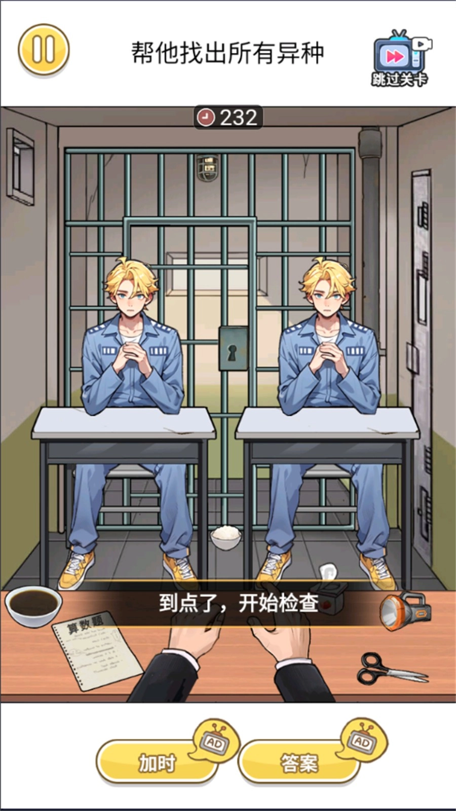 两个角色之间通过反复比对来找出差异,等把所有不同之处都找出来后,就能辨别真假并完成关卡,整体没有设置太高的难度。