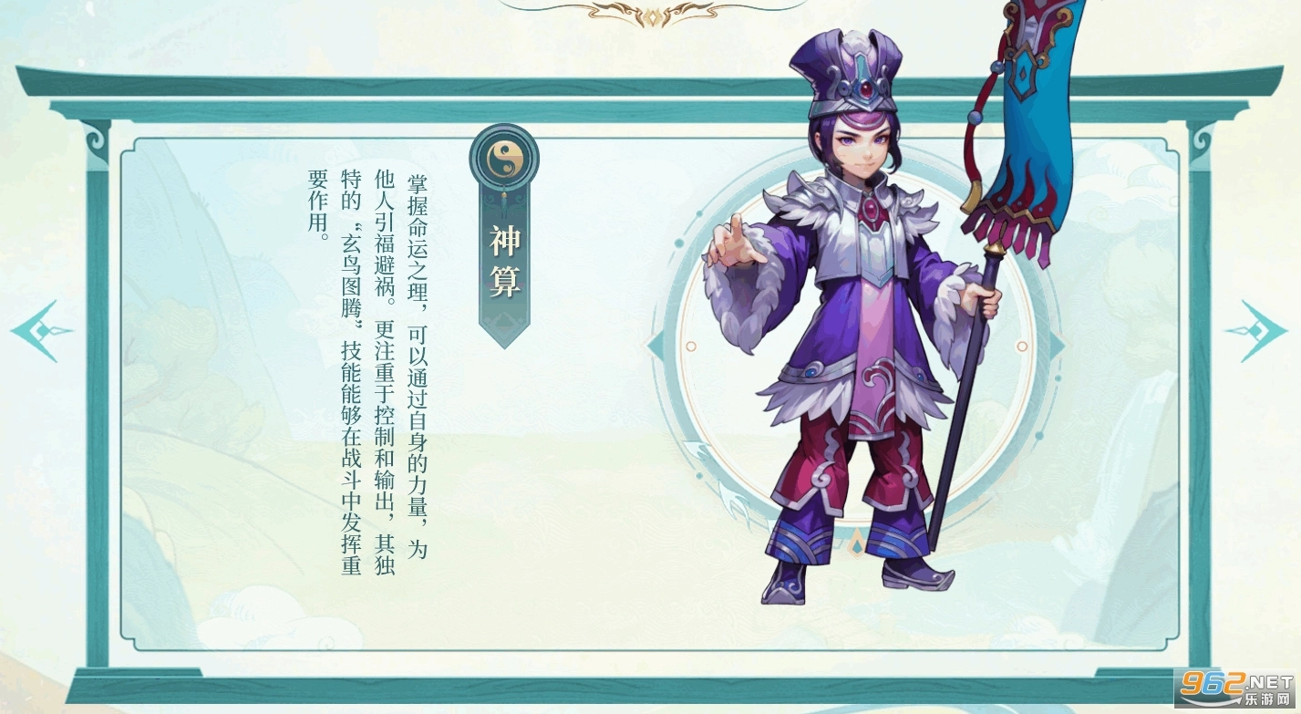 神算:「天佑之阵」减伤、「五行八卦阵」加速、「吉人天相」群体护盾。