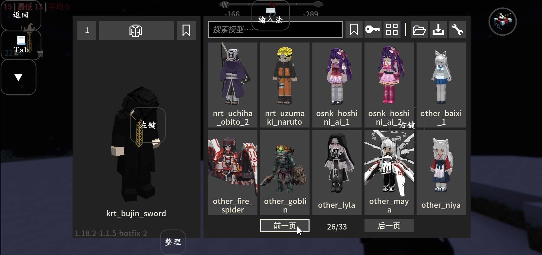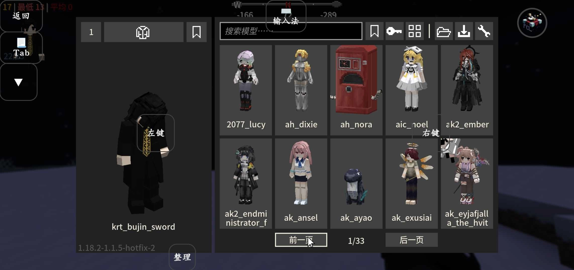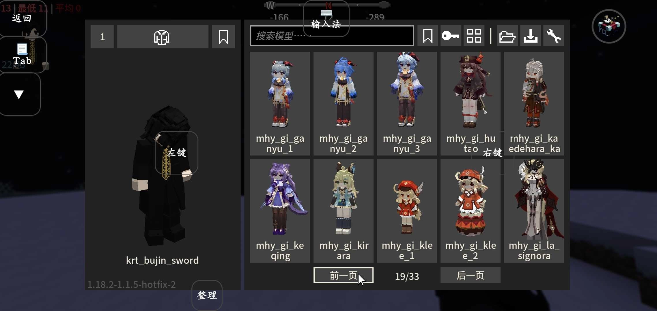 模型切换按钮:点击该按钮可切换至对应的模型;当按钮背景呈灰色时,代表当前模型未授权;按钮左上角的数字则显示该模型的可用纹理数量。