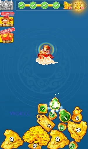 日富一日,这款简单有趣的2048类合成游戏,把象征财富的财神爷设为终极目标,用各类华丽璀璨的金石玉器作为合成元素,为你带来轻松愉悦的合成乐趣!你只需巧妙控制好物品的下落位置,让它们精准碰撞、合并升级,就能不断合成更高级的物品,逐步解锁最高等级的财神,赢取丰厚奖励!