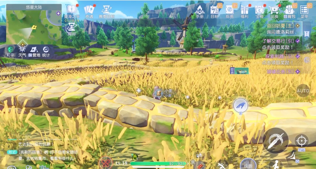 这里是一片金灿灿的麦田,食物分量足又管饱,听说上次的采集竞赛,这儿可是人挤人、热闹得不行呢!
